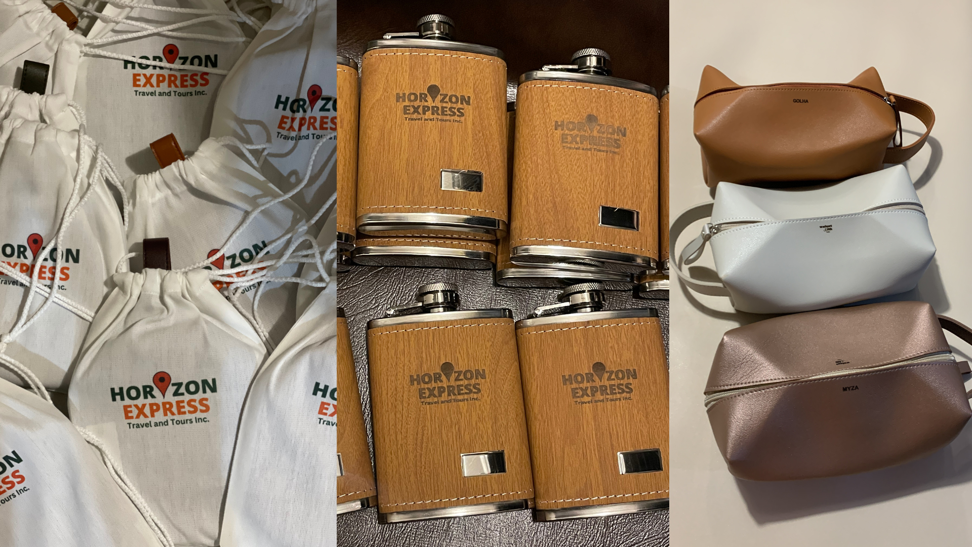 We offer a range of personalized lifestyle items including leather goods, pouches, notebooks, totes, sleeves, keychains, and curated gift sets. Items can be customized with names, initials, logos, or short messages.